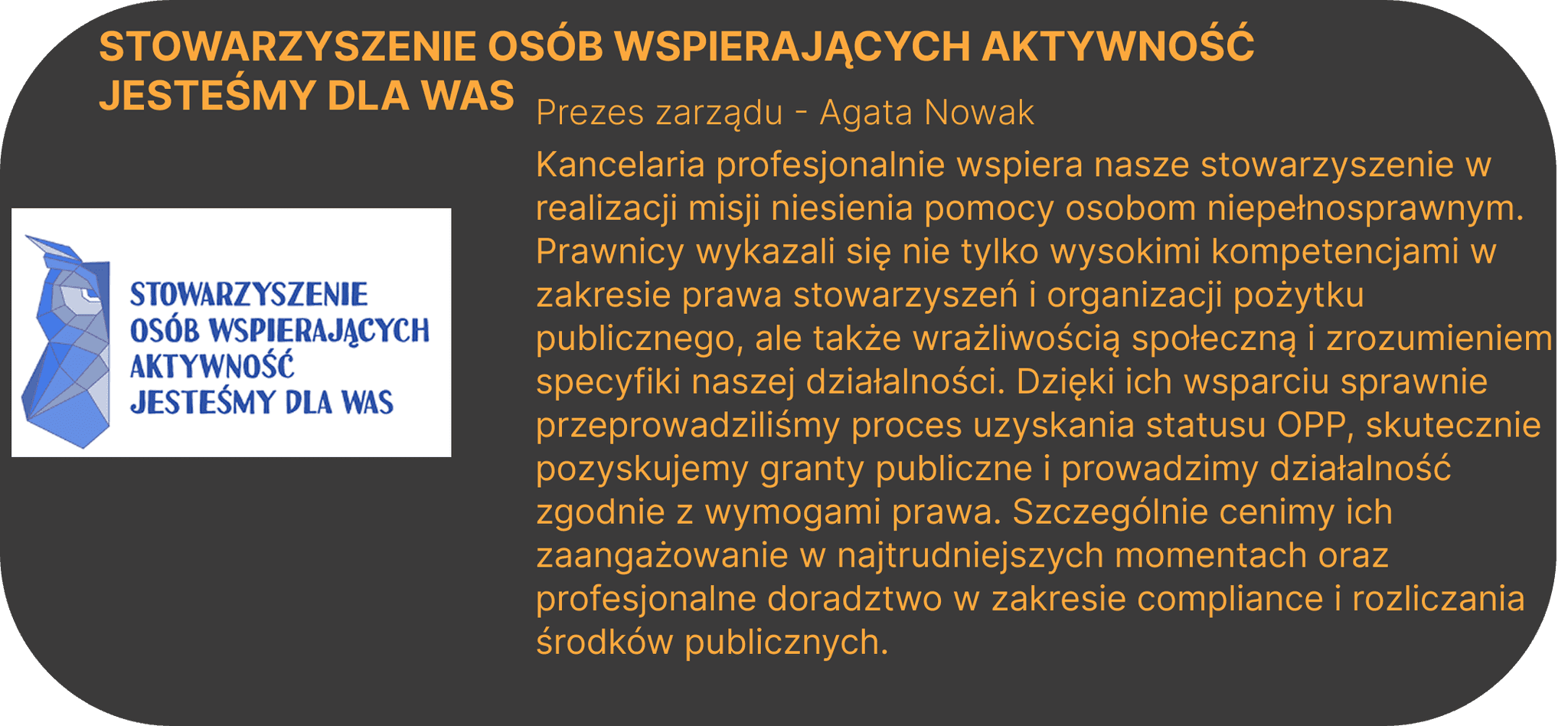 W pakiecie: dedykowany opiekun, SLA odpowiedzi, kwartalny przegląd ryzyk, preferencyjne stawki na spory i wdrożenia.