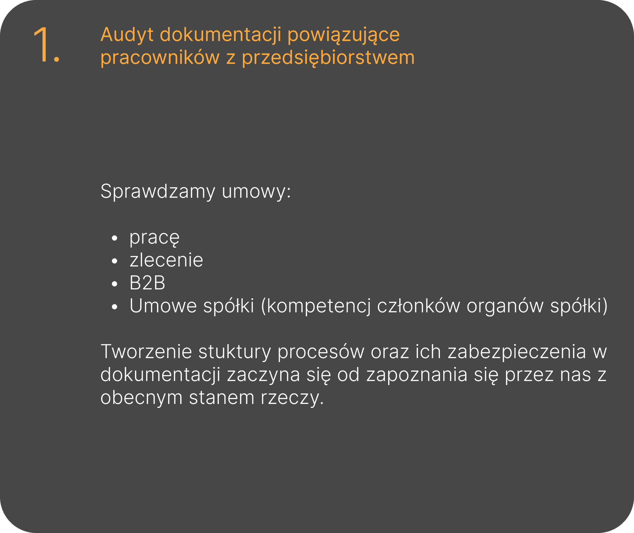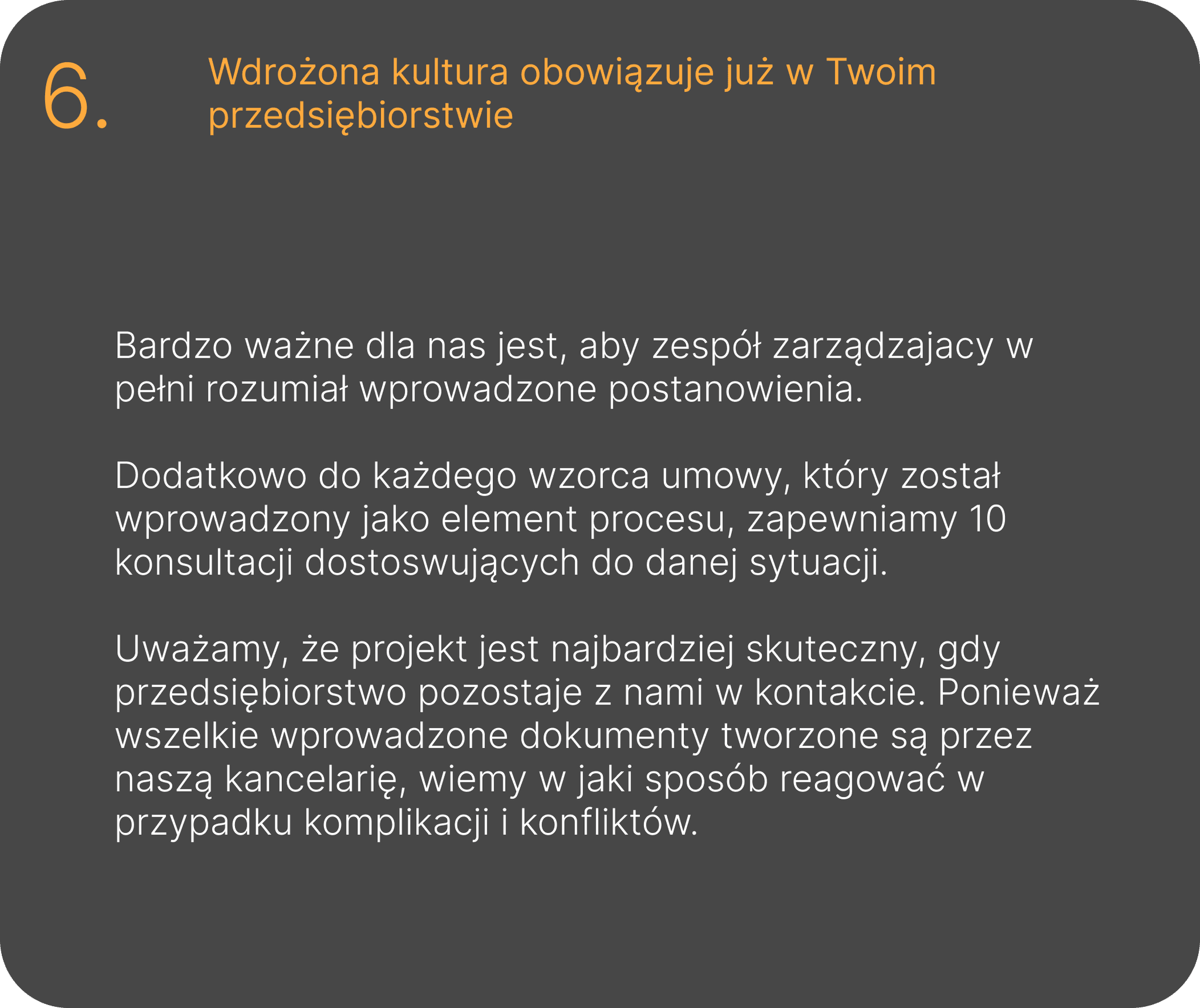 Uważamy, że aby Polskie przedsiębiorstwa mogły rosnąć i konkurować z międzynarodowymi korporacjami, potrzebna jest eliminacja ryzyka związanego z potencjalnie kosztownymi problemami prawnymi i gospodarczymi.